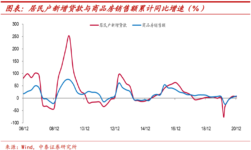 居民杠杆来自购房。信用周期的回落制约居民杠杆的扩张。居民加杠杆主要用于购房,居民户新增贷款增速和商品房销售额增速走势一致,而在信用周期向下的背景下,居民加杠杆行为将面临约束,这对房地产行业存在不小的影响。