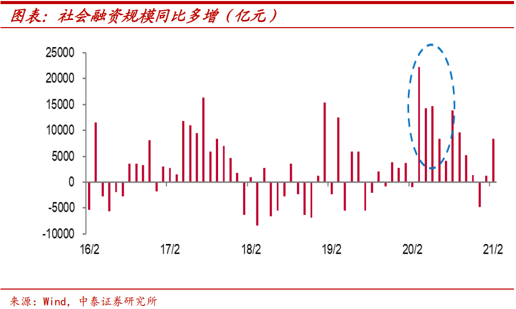 信用周期步入下行。虽然社融增速从去年底开始见顶回落,但今年2月社融存量增速仍达13.3%,与2020年底的增速持平,下行速度颇为缓慢。而进入3月以来,一方面,去年同期基数有大幅抬升,另一方面,前期对于房地产行业等融资约束政策效果也将逐渐显现,信用周期将步入较为明显的下行阶段。