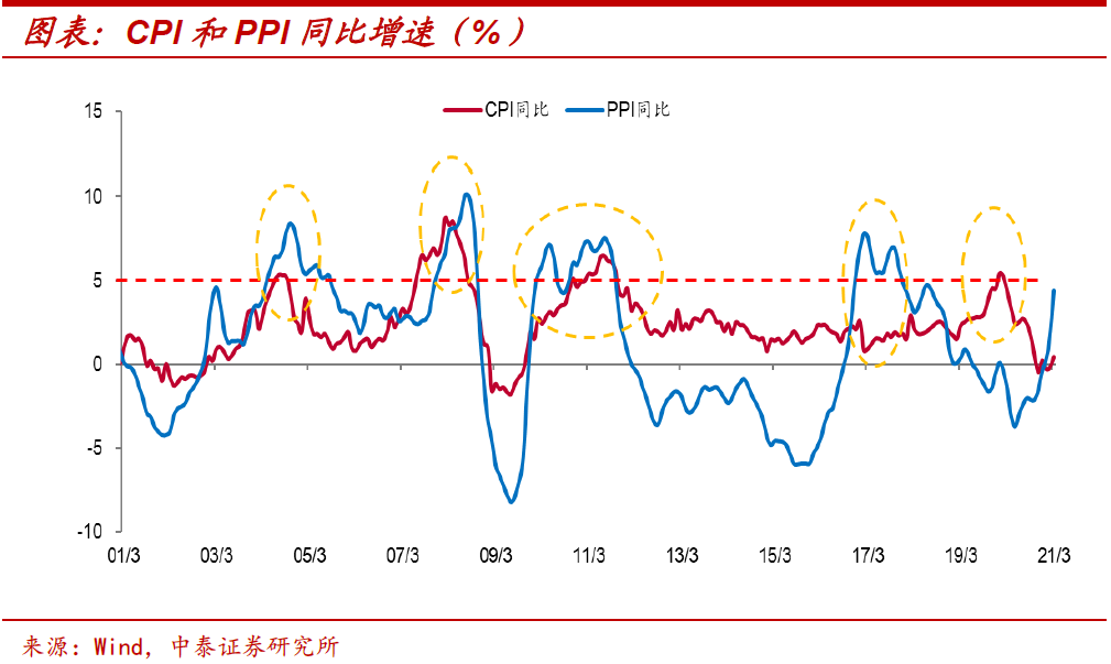 高通胀具备结构性特征。从通胀水平来看,自2012-2013年以后,我国所经历的高通胀就步入了结构性时代,CPI和PPI增速的联动性下降,表现为两者走势的分化,而这一轮通胀应该也不例外。