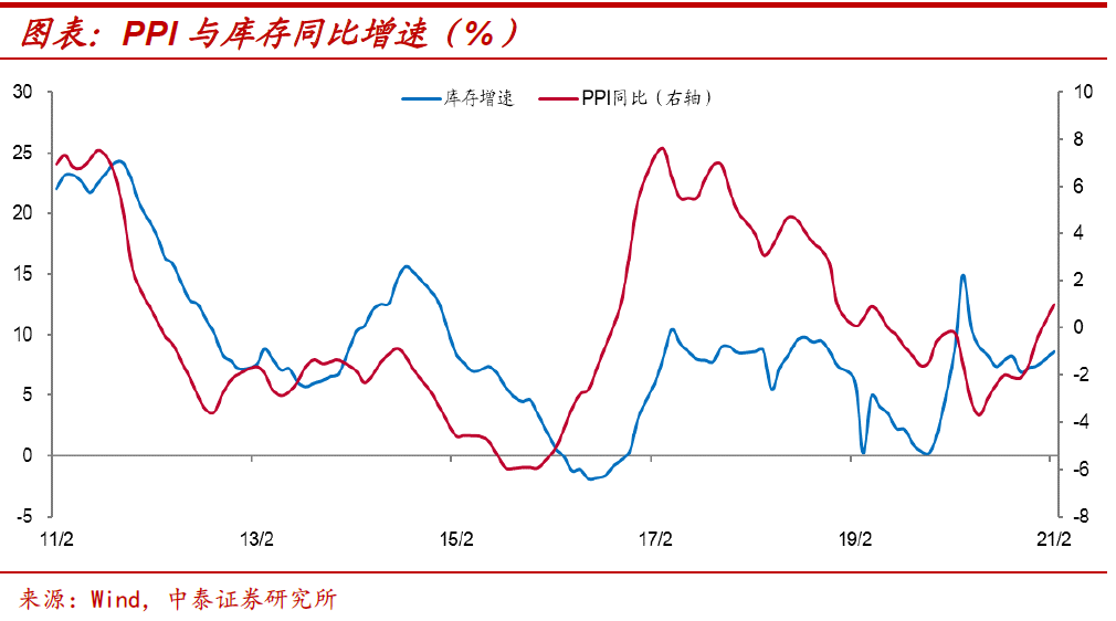 补库周期有望延续。通常来说,PPI的变化对于工业企业库存具有一定的领先性。自去年6月开始PPI同比增速触底回升,随后在去年四季度工业企业也开启了补库存的进程。而根据我们的预计,PPI同比增速将在今年二季度达到高点,这也意味着当前工业企业补库进程未完,补库存周期有望延续。