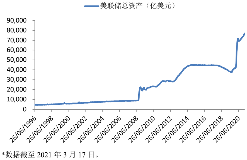 量化宽松就是美联储创造大量基础货币直接去市场中购买各类资产以压低这些资产的收益率,进而降低经济中的融资成本,推动经济复苏,其带来的直接后果就是美联储资产负债表的扩大。
