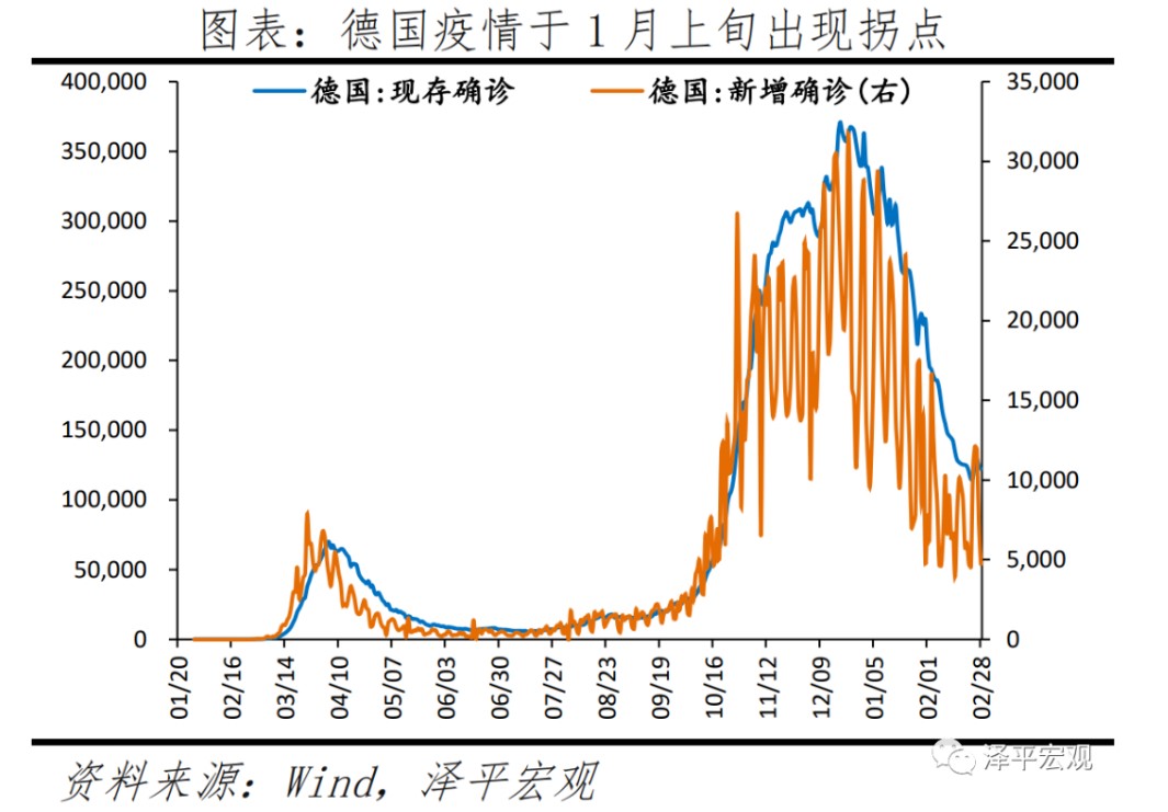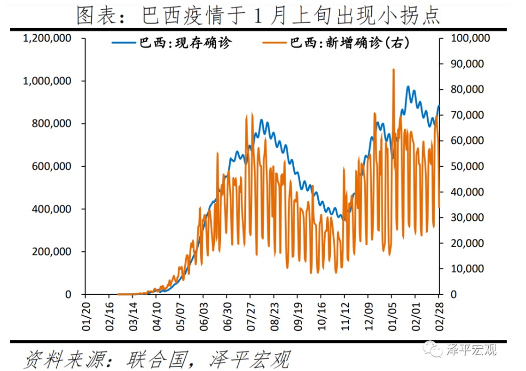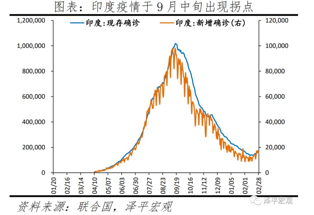 全球单日新增病例于1月上旬出现拐点,美欧等多数疫情严重的经济体均已出现拐点。截至2月28日,全球日新增降31.5万;其中,美国日新增5万,巴西3万,意大利、法国近2万,印度、俄罗斯超1万。