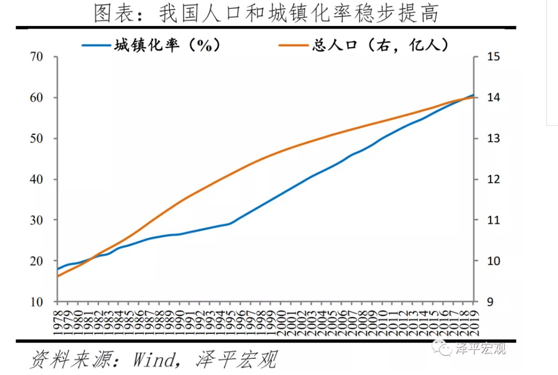 2020年末常住人口城镇化率超过60%,保持稳步增长态势,较高收入经济体的81.3%仍有20个百分点的空间。过去四十年,中国城镇常住人口从1.7亿快速增至8.5亿,净增加6.8亿,城镇化率从17.9%提升至60.6%,提高43个百分点,深刻地改变了中国经济社会格局,成就了过去中国重化工业、大规模基础设施投资、房地产、消费升级等的飞速发展。当前中国城镇化率稍高于55.3%的世界平均水平,但明显低于高收入经济体的81.3%和中高收入经济体的65.2%,中国城镇化还有约20个百分点的空间。