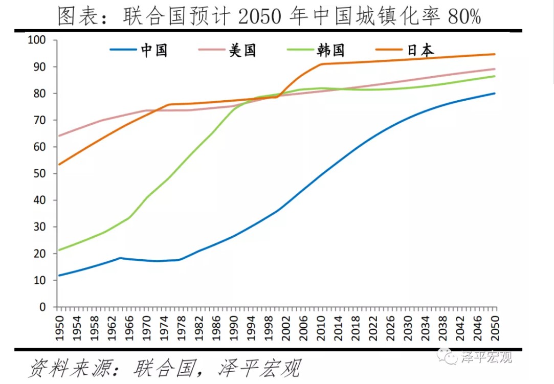 未来二十多年中国将新增约1.9亿城镇人口,主要向城市群都市圈集聚。中国城镇化已进入中后期,虽仍处于快速发展期但速度逐渐放缓。根据联合国《世界城镇化发展展望2018》,2030年中国城市化率将达70.6%,2050年达约80%。结合我们根据当前生育趋势对未来中国人口的预测,中国城镇人口峰值将在2042年左右达到约10.4亿人的峰值,将比2019年再增加1.9亿,其中80%将集聚在19大城市群,其中多数又将集聚在大都市圈。新增城镇人口将带来基础设施、地产、新零售、医疗卫生、文化娱乐等多个领域的广泛需求,为我国经济发展提供重要引擎。