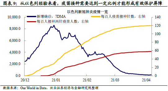 此外,疫苗对变异病毒的有效性,也需持续关注。如前所述,近期印度新冠突变株的占比快速提升。未来值得关注的疫苗有效性指标在于以色列的疫情控制能否持续保持低位。