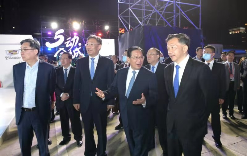 启动活动后,李强、王文涛、慎海雄、龚正等来到上海展览中心南广场,察看上汽展示区、老字号集市和央视新闻直播间,就新品首发首秀、民族品牌传承、消费模式创新等作了具体了解。