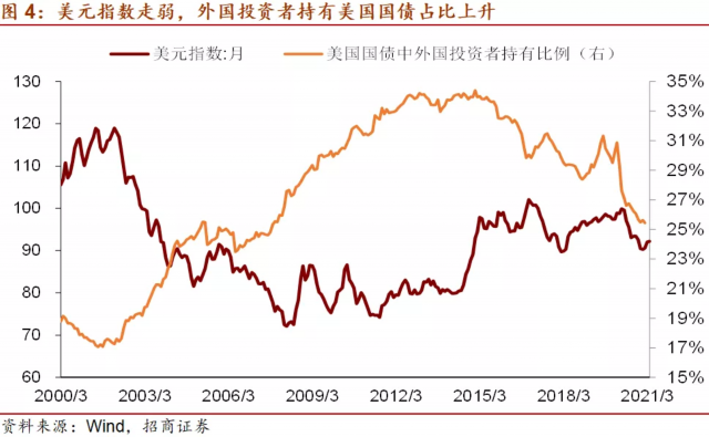 。研判美债走势不能拘泥于美国自身的经济周期,而应放眼全球的金融周期。鉴此,美债收益率上行固然是美国名义经济增速上行和预期改善的必然结果,但若同时考虑到美联储宽松政策取向和外资回流增持美债对美债收益率的影响,美债收益率的升幅和升速将受到抑制。这正如2002-2005年国际资本大量增持美国中长期国债,相应压低长期国债收益率,是“格林斯潘之谜”的重要解释原因。二季度,将检验国际资本增加持有美债,2021全年美国10Y国债收益率的中枢水平低于市场一致预期值的观点。