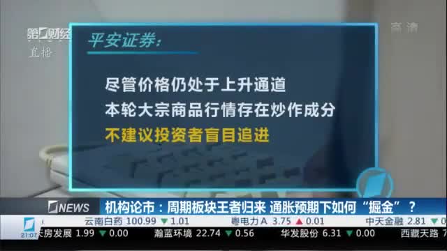 海通证券:在流动性中性偏紧、经济增速面临回落的大环境下,A股或难以出现趋势性的大级别反弹,前期的极端抱团难以为继,高估值板块都将面临调整的压力。对于后市配置方向,建议投资者可以从两个方向布局:一是与PPI上行相关的钢铁、有色、煤炭等上游板块;二是市场震荡中,关注低估值、高性价比的银行、保险等板块。