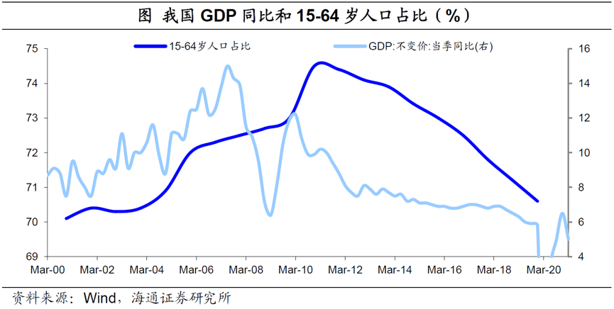 经济增长面临向下压力。作为经济增长的三大要素之一,劳动人口供给的下降对经济增速下滑有直接影响,尽管人口质量的改善可能抵消一部分人口红利减退的影响,但结构变化的负面影响更大。作为人口红利减退更早出现的日本,其15-64岁劳动年龄人口占比在90年代前后达到顶点,对应经济增速也出现明显换挡。而2010年左右我国劳动人口占比就开始出现回落,同时期我国GDP增速也出现换挡。未来我国人口红利进一步减退的过程中,经济增速或也面临进一步向下的压力。