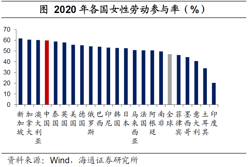 尽管低生育水平是经济社会发展的一个结果,目前大多数发达国家也都普遍面临这一问题。但是我国生育率低迷也存在一些特殊性。一方面,我国的女性劳动参与率较高,抚养幼儿可能意味着退出职场,这意味着女性生育机会成本较大。另一方面是因为结婚成本和育儿成本不断上涨,年轻人推迟结婚以及生育。此外,尽管全面放开二胎,但是生育限制还是存在。