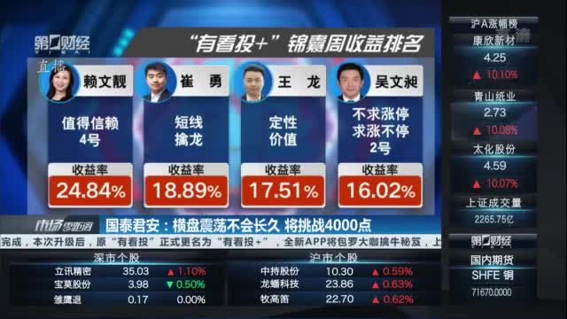 国泰君安策略团队最新发布的研报指出,横盘震荡不会长久,随着宏观与外围环境由不确定走向确定,风险评价将会下降,由此驱动行情从震荡走向拉升,挑战四千点。配置上,中盘蓝筹领跑,大盘蓝筹跟随,看好券商、新能源车、建材、新兴消费、医药等方向的投资机会。