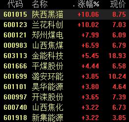 周二午后,煤炭板块走强,截至发稿,陕西黑猫、兰花科创涨停,郑州煤电涨近8%,金能科技、山西焦煤、平煤股份发力跟涨。