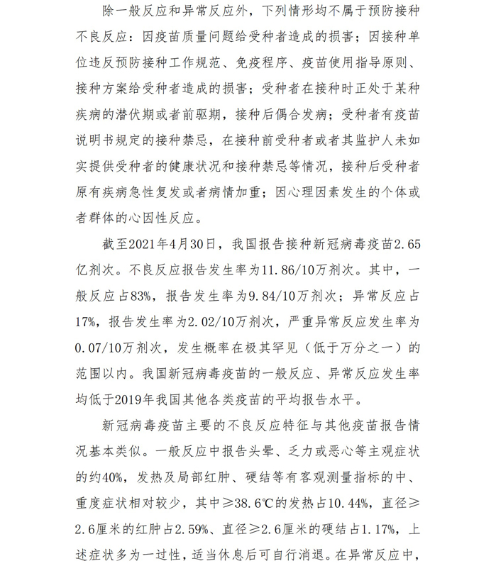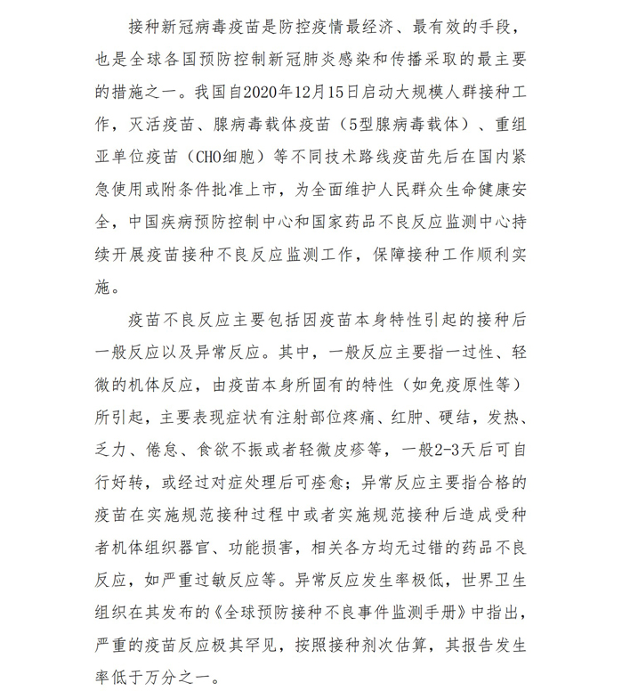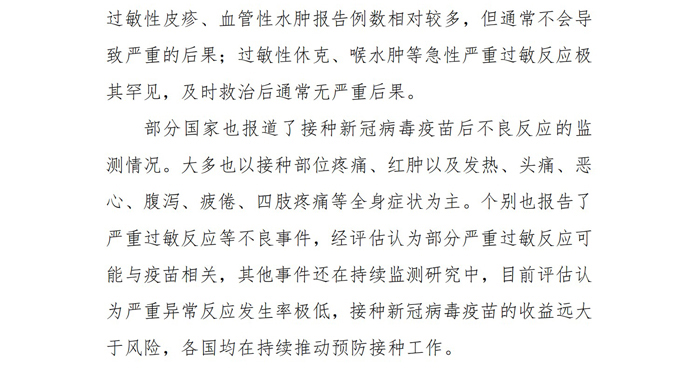 以下是国家卫生健康委员会发布的关于新冠病毒疫苗预防接种不良反应科普知识问答: