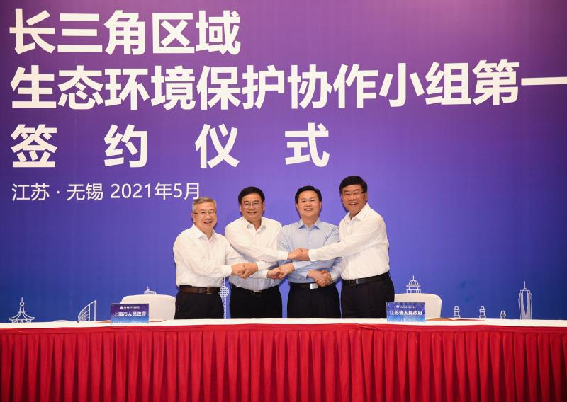 会前,上海市、江苏省、浙江省、安徽省人民政府签署了长三角区域碳普惠机制联动建设工作备忘录和长三角区域固体废物和危险废物联防联治合作协议,上海市、江苏省、浙江省、安徽省环保产业协会及南京、杭州、宁波、无锡和苏州市环保产业协会签署了长三角区域环保产业协会联席会议备忘录。