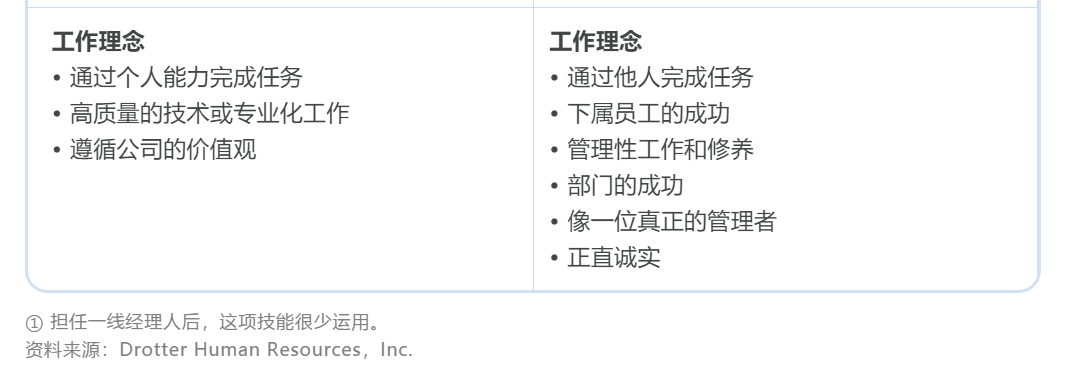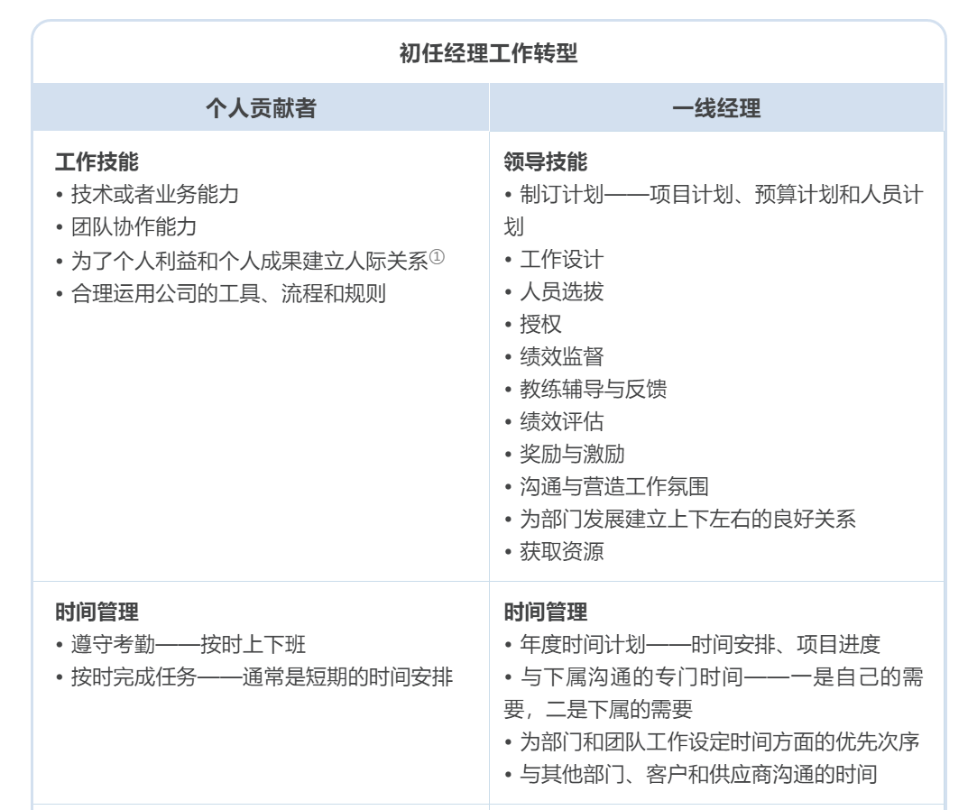 下表概述了从一线员工到经理必经的转型。