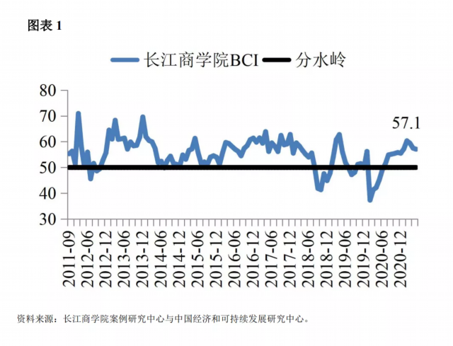 长江商学院最新发布的5月“中国企业经营状况指数”为57.1,与2021年4月的57.5相比有小幅下滑。