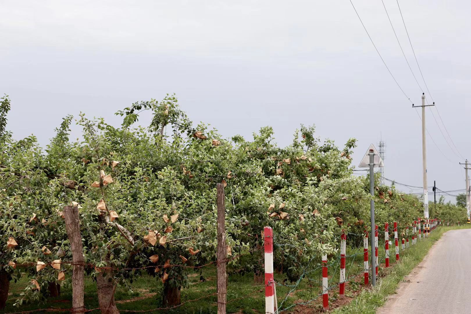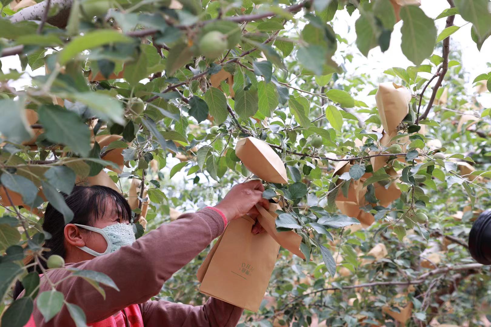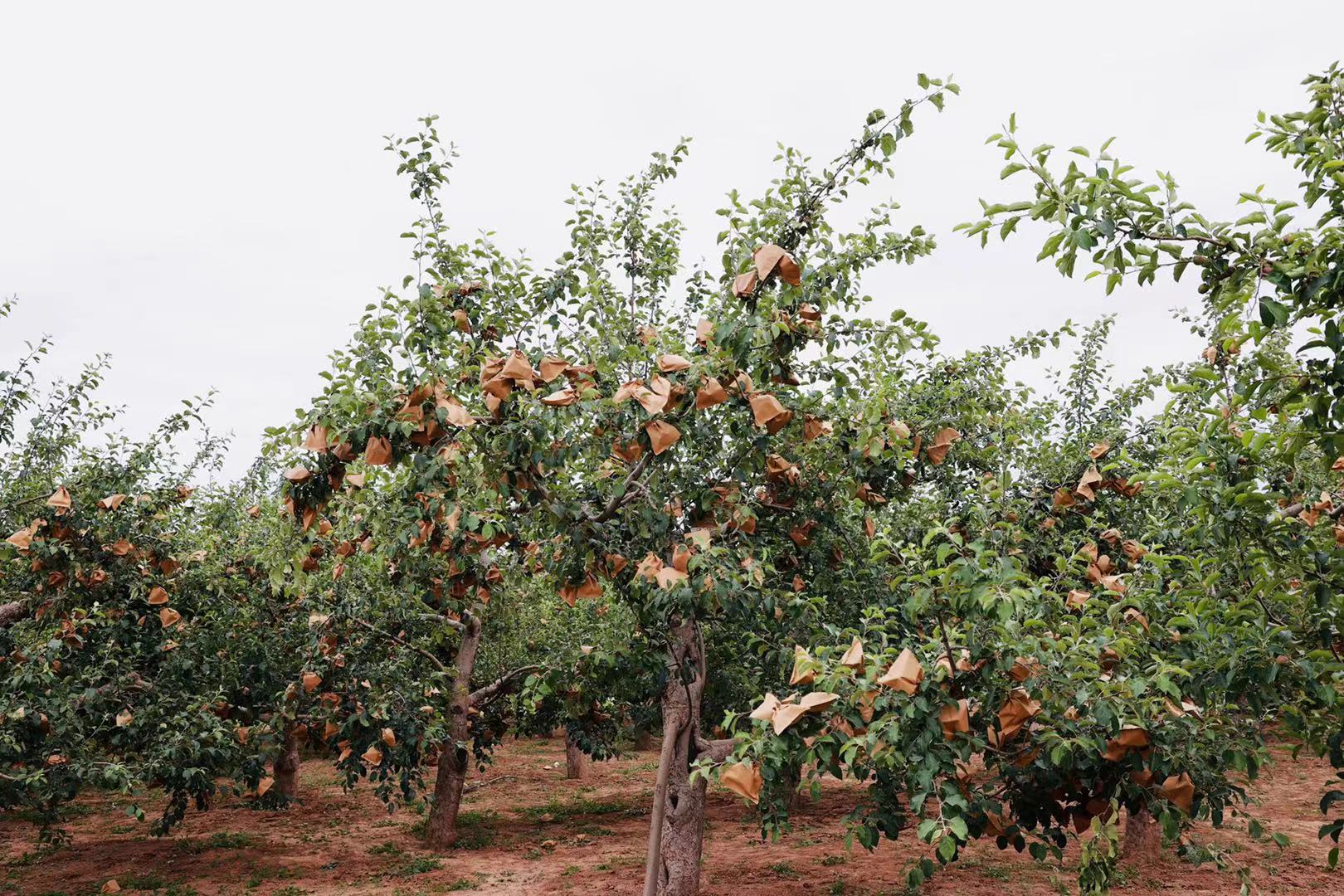延安市富县交道镇刚刚完成套袋的果园。