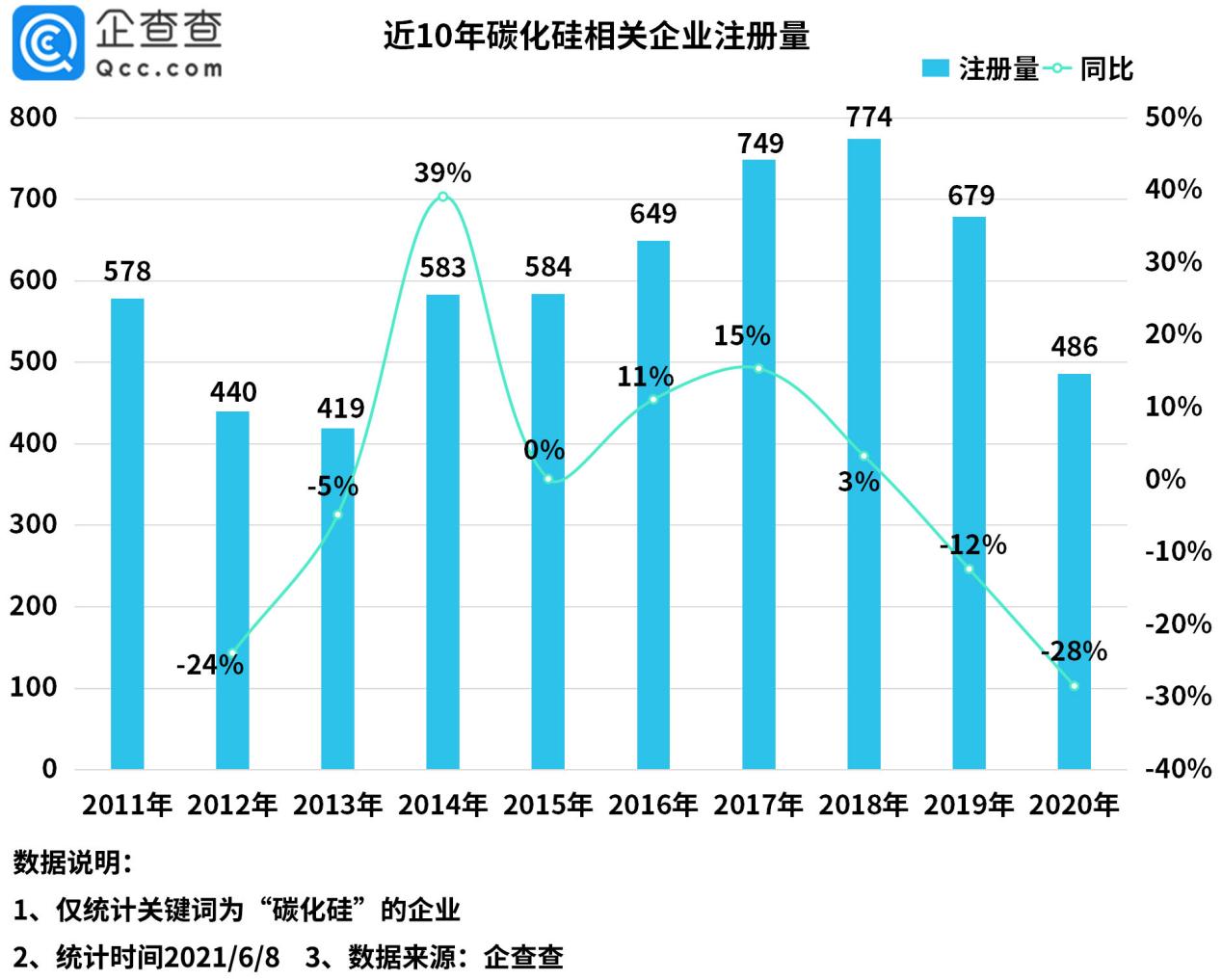 2020年共新增碳化硅相关企业486家,今年1-5月新增100家