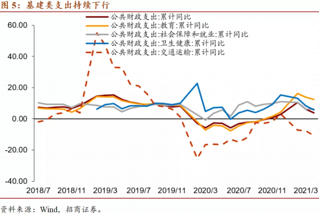 3、支出持续放缓,基建类支出持续下行