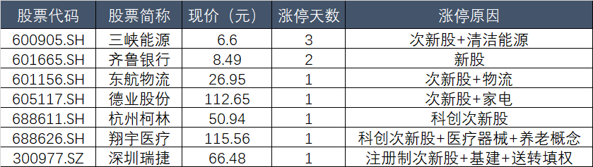 今天有多只次新股涨停,三峡能源(600905.SH)三连板。从上周五盘后龙虎榜数据来看,三峡能源龙虎榜资金净卖出0.72亿元,参与者清一色为游资席位。知名游资国泰君安证券上海江苏路营业部、国泰君安证券南京太平南路营业部净卖出额均超0.6亿元。