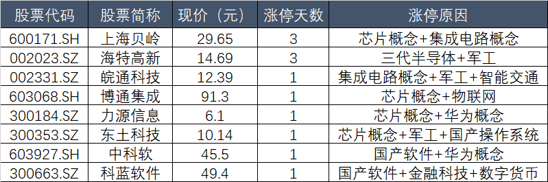 上周五,芯片股“疯狂”,今天以芯片、第三代半导体等为代表的科技股继续活跃。个股方面,上海贝岭(600171.SH)、海特高新(002023.SZ)(兼有军工概念)等均实现三连板。
