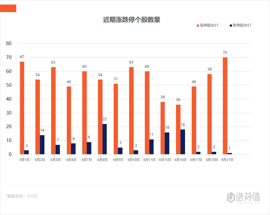 个股方面,全市场上涨个股2728只,下跌个股1435只;其中,共有涨停个股(非ST)70只,跌停个股(非ST)1只。