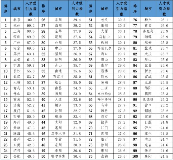 不只是武汉,智联招聘联合泽平宏观课题组专家发布的《中国城市人才吸引力排名》报告显示,杭州、长沙、西安、武汉、成都、重庆、郑州等新一线城市均跻身前二十。