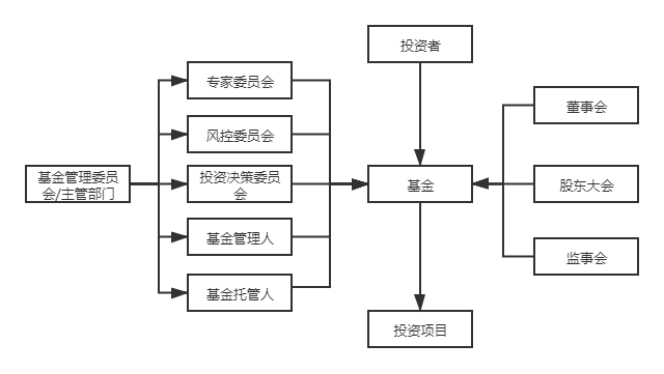 基金结构是基金募、投、管、退操作过程中相关责任主体的角色分工与权限设置,涉及到募集机构、管理机构、托管机构、基金主体、中介机构等主体,以及基金持有人大会、投资决策委员会、风控委员会以及其他为增强基金治理而设置的组织或机制(如投资顾问、“基金管理委员会”、“专家顾问委员会”等),采取FOF模式的基金还会增加子基金的治理结构。
