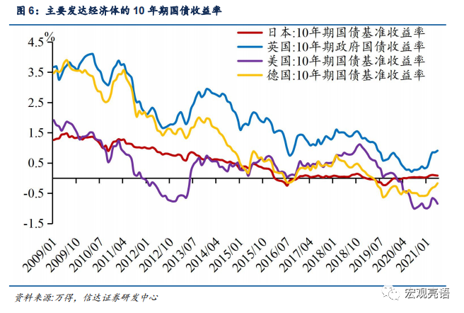 (3)低利率环境导致政策空间不足,美联储增加了量化宽松手段。1990年之后,美国以及主要发达国家的利率水平在持续下滑(见图6)。如图6,在低利率环境下,美联储缺乏充足的降息空间以应对经济下行。2020年3月,美联储实施两次降息便触及零利率,美联储只能依赖量化宽松等非常规手段,来对经济进行调节,即通过购买债券,向市场投放流动性。