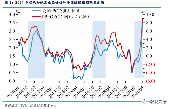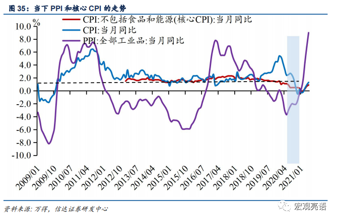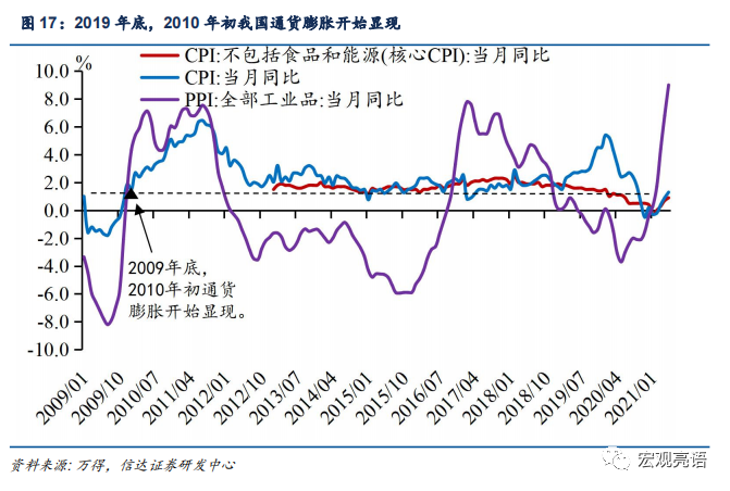 分析2009-2010年我国通胀预期显现的主要原因,主要有:一是世界主要经济体为应对危机普遍实施了超宽松的货币政策,全球货币环境宽松,特别是美元等主要货币利率超低推动了全球的通胀预期,表现为国际初级产品(大宗商品)价格大幅反弹,类似2020年新冠疫情后,世界主要经济体实施低利率和量化宽松,大水漫灌;二是从国内来看,2009 年以来,为应对国际金融危机,我国信贷总量快速增长,一定程度上推动了社会公众对未来价格水平上涨的预期,类似于我国去年疫情爆发后信贷和社会融资规模飙升;三是部分大宗商品、服务价格以及房价等资产价格明显上涨,也非常类似2021年初经济复苏时的我国宏观环境。