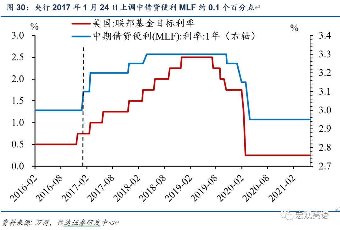 (1)美联储政策调整的时间。央行的政策利率MLF和7天逆回购利率及美国的联邦基金目标利率有一致性。