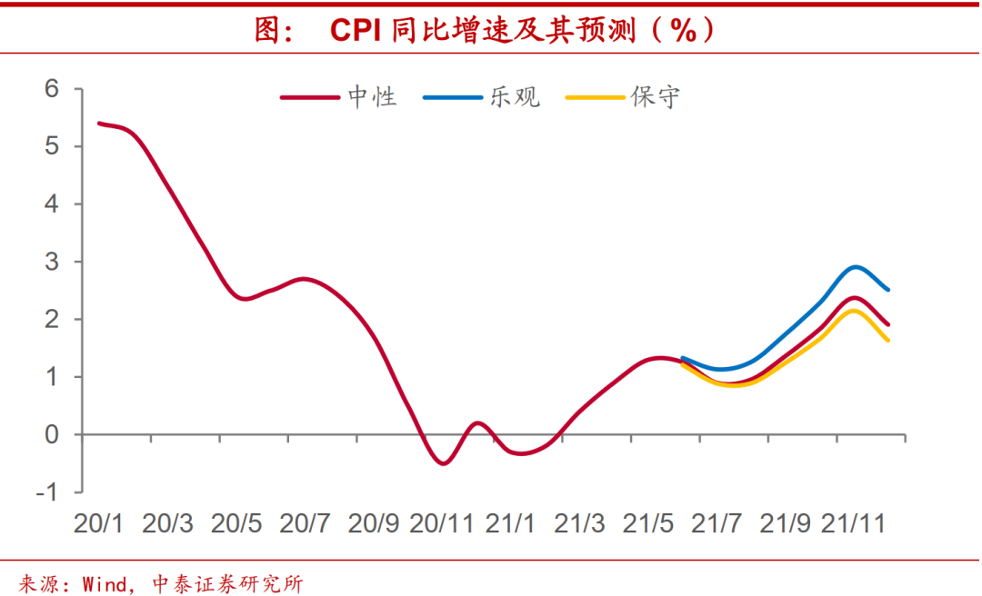 年内CPI压力不大,远期风险仍存。基于对猪肉价格不同的情景假设,我们对年内CPI同比增速走势做以预判。在中性情形下,下半年CPI同比增速呈现前低后高的态势,高点或将突破2%,而全年增速中枢约在1.1%左右。而在猪肉价格出现显著上行的乐观假设下,下半年CPI同比增速高点或将接近3%,但全年增速中枢不会超过1.5%。虽然年内猪肉价格的变化或许并不会对CPI增速构成很大的上行压力。但一方面,根据猪周期变化规律以及能繁母猪等领先指标反映的情况来看,明年上半年猪价中枢或有抬升,进而将带动CPI增速有所走高;而另一方面,当前生猪规模化养殖程度提高,较大规模生猪饲养场占比明显提升,但从本轮猪周期实际情况来看,这或许加大了猪价的周期波动幅度,因而对于猪价上行带来的通胀风险仍需警惕。