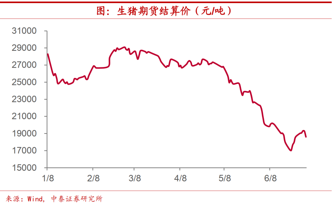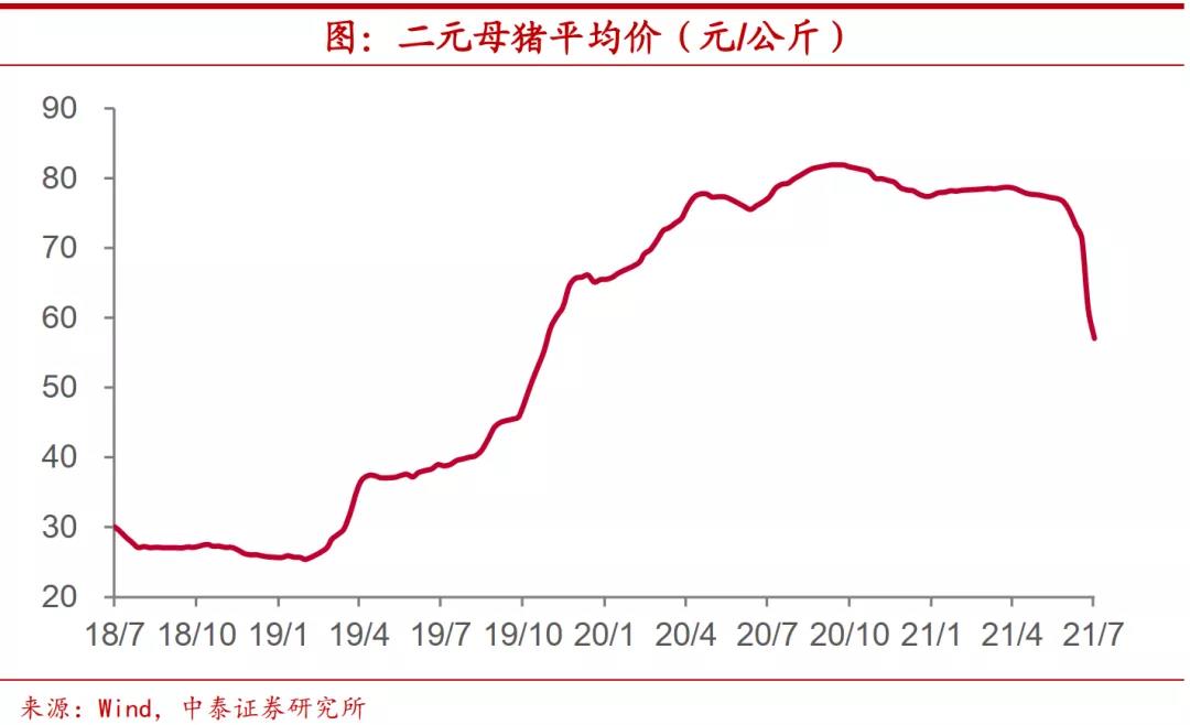 补栏意愿也有下降。其次,市场对于母猪的补栏意愿或也有所下降。一方面,二元母猪均价从6月初超过75元/公斤的高位降至7月初的仅57元/公斤,价格下滑了接近25%;另一方面,头部种猪企业的后备母猪销量增速近两个月也持续回落。这均意味着未来生猪供给将趋于走弱。