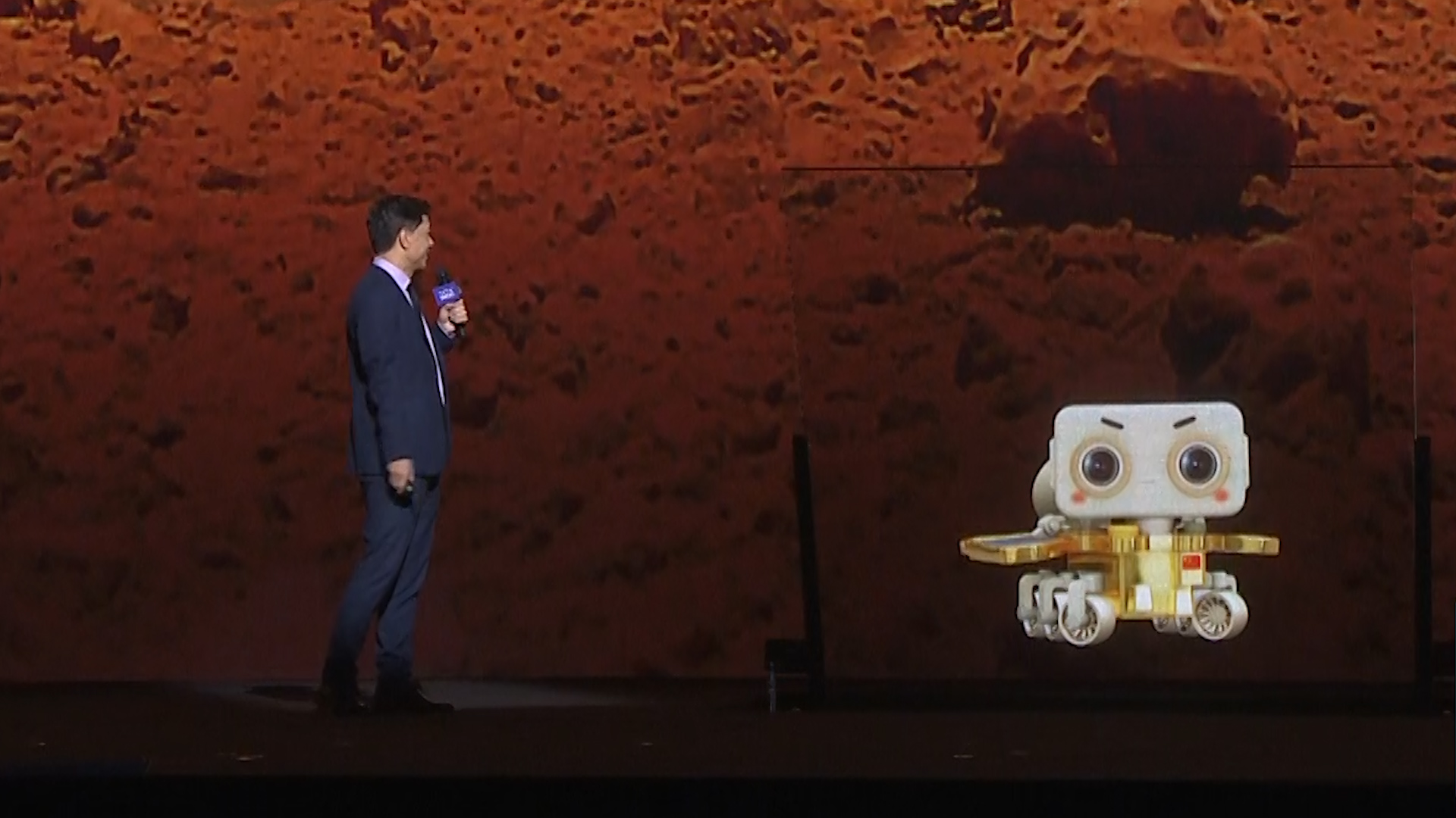 7月8日,在2021世界人工智能大会开幕式上,百度创始人、董事长兼首席执行官李彦宏对话中国第一辆火星车数据人“祝融号”聊造车,它是基于赛凡科幻空间Q版火星车原创设计,是中国第一辆火星车的虚拟代言人。