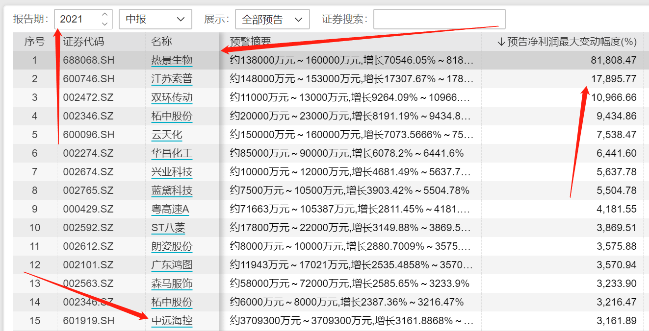 数据显示,截至7月8日收盘,有304家公司录得业绩翻番,其中75家公司预计净利润同比增速超500%,38家公司预计实现10倍以上的业绩增速。