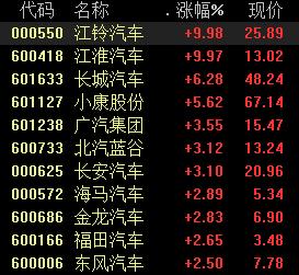 周五盘中,汽车整车板块快速拉升,截至发稿,江铃汽车、江淮汽车拉升封板,长城汽车涨超6%、小康股份涨超5%、广汽集团、北汽蓝谷、长安汽车等跟涨。