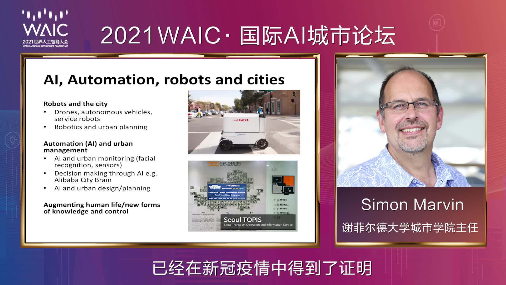 大家好,我是Simon Marvin教授。很高兴能出席人工智能国际峰会。我来自谢菲尔德大学。我们与上海智慧城市发展研究院是好朋友。我很荣幸能与大家分享我们对城市生活和新技术发展之间相互关系的理解。