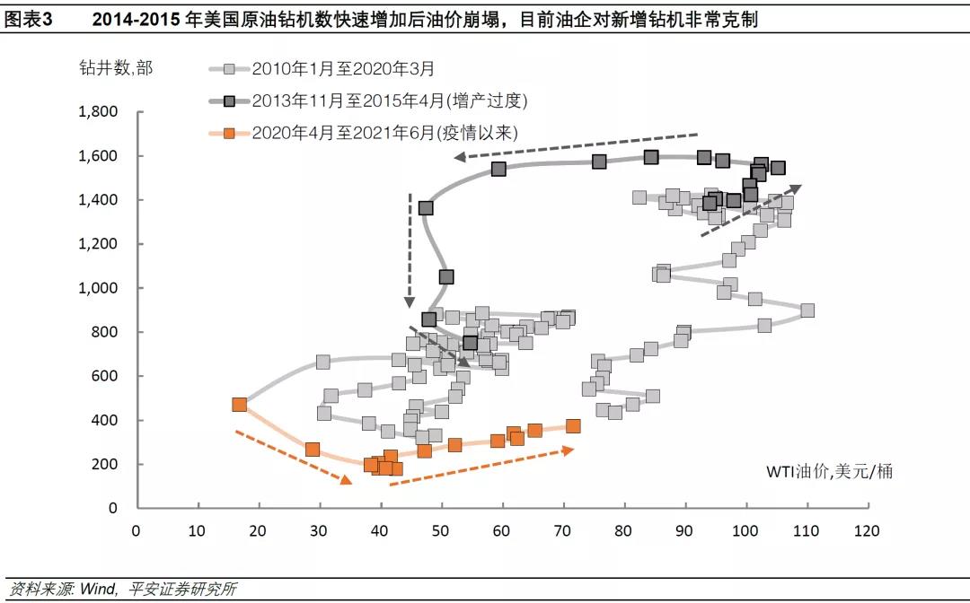我们认为,本轮美国原油钻机增加缓慢的主要原因有三点: