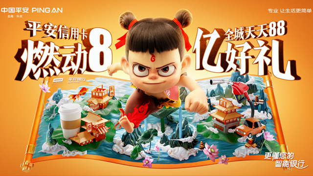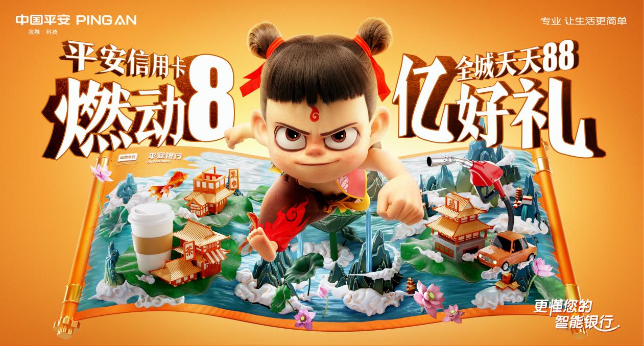 近日,平安银行信用卡携手国漫电影票房Top 1《哪吒之魔童降世》,升级开启第三季“全城天天88”全域整合营销,并首次推出“哪吒主题卡面”,包含信用卡与借记卡。此次活动全方位布局线上线下消费场景,以“金融+国潮+生态”促动全民消费。