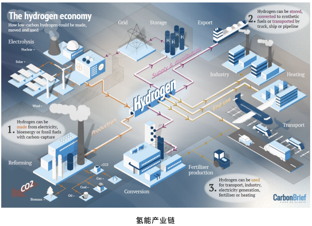 我们相信,氢能产业将在世界能源结构中占有一席之地。由于其发展仍处于早期阶段,投资机构要重点关注国内外扶持和补贴政策以及市场反应。