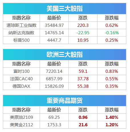 美股周三收盘涨跌不一,纳指小幅下滑,道指与标普500指数创历史新高。美国7月CPI环比增幅基本符合预期,但扣除食品与能源因素的核心CPI低于预期。道指涨220.30点,或0.62%,报35484.97点;纳指跌22.95点,或0.16%,报14765.14点;标普500指数涨10.95点,或0.25%,报4447.70点。
