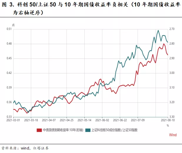 利率下行利好整个成长和科技板块,但由于互联网平台受到了反垄断政策的约束,影响了未来现金流前景的预测,利率下行并没有起到提振互联网平台估值的作用。这也是为什么国内的互联网公司与美股科技板块出现背离的原因,后者充分享受到美债收益率下行产生的估值溢价。