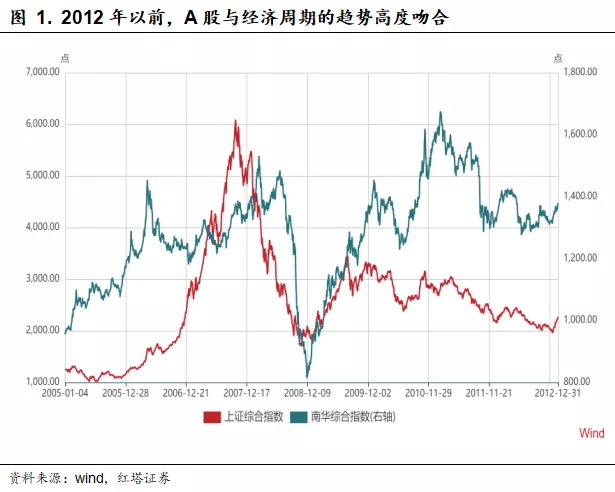 2006-2007、2009-2010年的A股牛市是由全球化和城镇化大势推动的,领涨板块集中在金融、地产、周期这几个领域,牛熊转化大体与经济周期波动一致,经济好市场就牛,经济不好市场就熊。