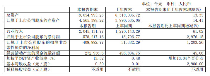 8月23日,海南矿业晚间披露半年度报告,公司2021年半年度实现营业收入为20.45亿元,同比增长61.02%;归母净利润5.78亿元,同比增长2976.15%;基本每股收益0.30元。