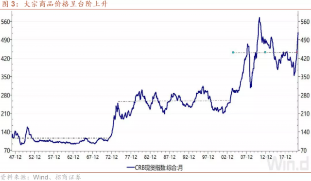 二是更高的价格水平。当前的大宗商品价格上升正是全球金融周期的重要驱动力和重要表现特征,指向未来数年大宗商品价格乃至CPI都将告别过去数年“低通胀”的局面。
