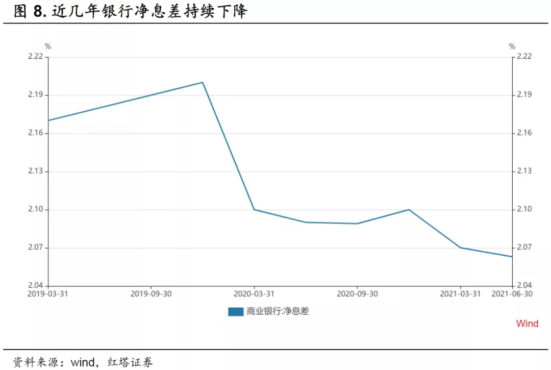但从监管披露的数据看,银行净息差降到了2.06%,是近期的新低了。如果金融让利实体指的是银行降低实体的贷款利率,目前已难以持续。