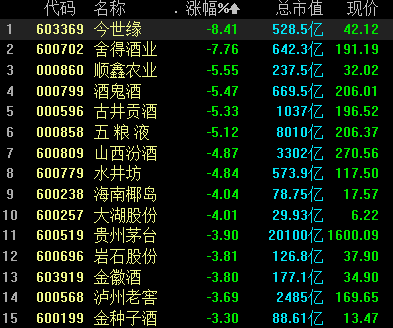 8月26日,白酒股低迷,盘中持续走低,截至发稿,今世缘跌超8%,舍得酒业跌7%,五粮液、酒鬼酒等跌超5%,贵州茅台跌近4%,泸州老窖、海南椰岛等跟跌。