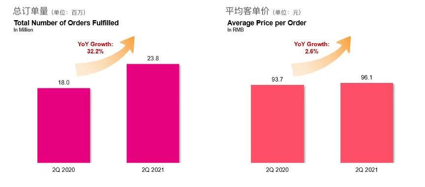 美东时间8月26日美股收盘后,社区零售企业每日优鲜(NASDAQ:MF)发布了截至2021年6月30日的第二季度业绩报告。财报显示在2021年第二季度,每日优鲜净收入同比增长40.7%%至18.9亿元,GMV同比增长35.4%至23.1亿元,订单量同比增长32.2%至2380万单,整体业务进入高速增长新阶段。