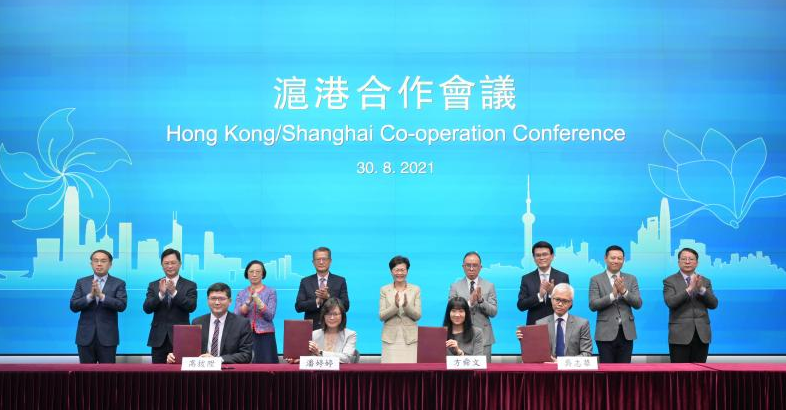沪港合作会议第五次会议今天(30日)下午通过视频连线的方式举行。上海市委副书记、市长龚正,香港特别行政区行政长官林郑月娥致辞并签署第五次会议合作备忘录。上海市副市长宗明、香港特别行政区财政司司长陈茂波回顾沪港合作情况并展望未来愿景。