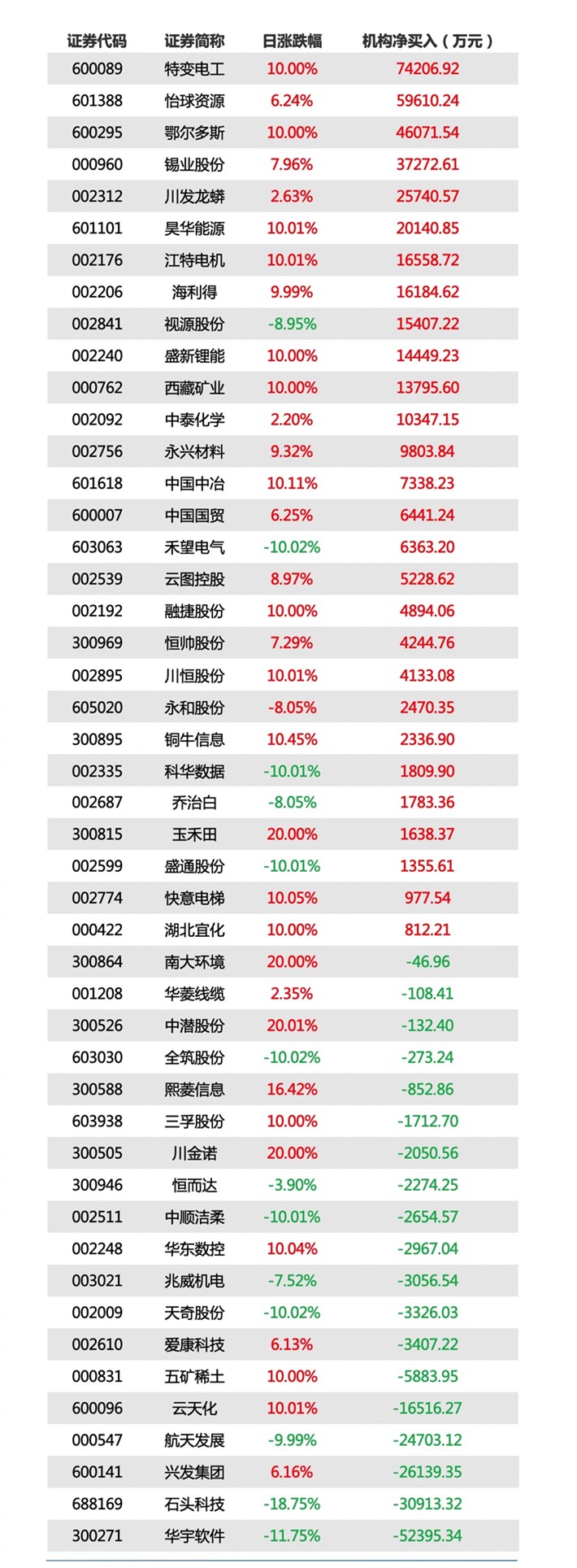 机构昨日买入这28股,抢筹特变电工7.42亿元丨龙虎榜